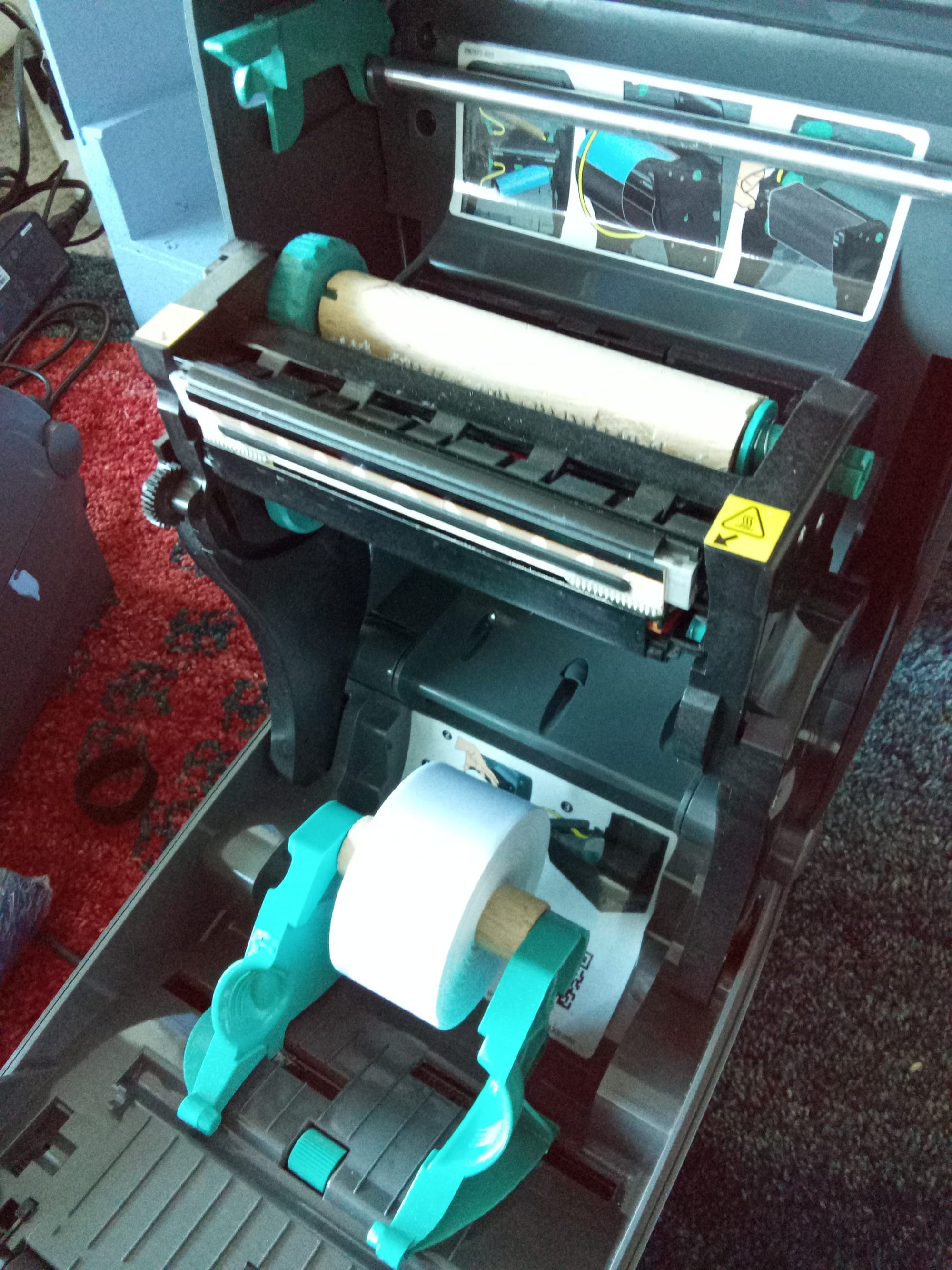 When it turned out the printers didn't come with the necessary uptake reels and I had no time to procure them, my cousin Bill helped me construct substitutes out of dowels.